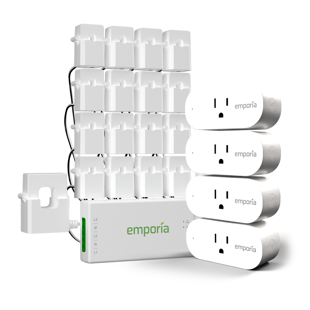 UL CERTIFIED ENERGY MONITOR INSTALLS IN CIRCUIT PANEL of most homes with clamp-on sensors. Supports single-phase up to 240VAC line-neutral; single, split-phase 120/240VAC; and three-phase up to 415Y/240VAC (no Delta). Panels with access only to busbars will need flexible sensors available from Emporia Energy.