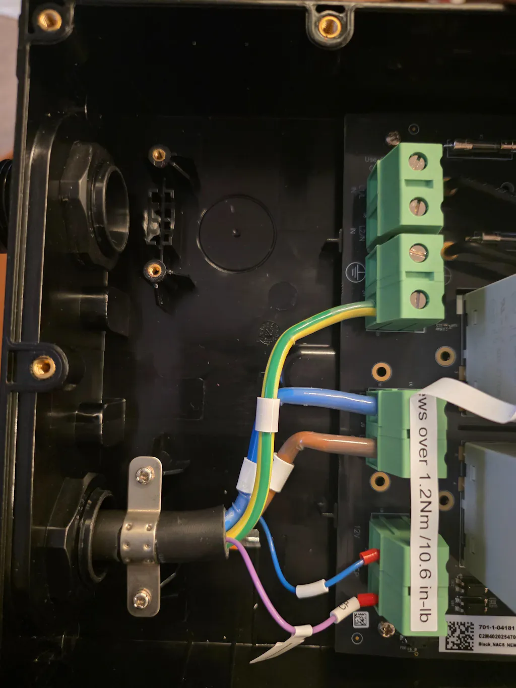 - NEMA Type 14-50P (up to 40A) with 28" cable. Hardwired (up to 48A) with 3' long conduit.